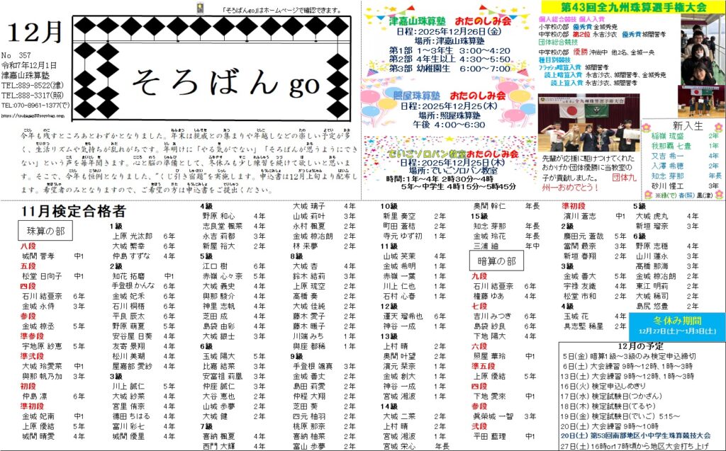 塾報(そろばんgo)2025年12月号発行しました!